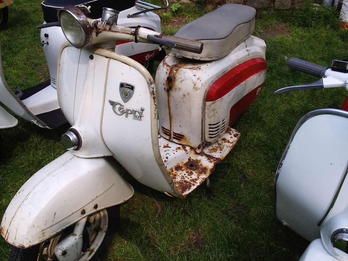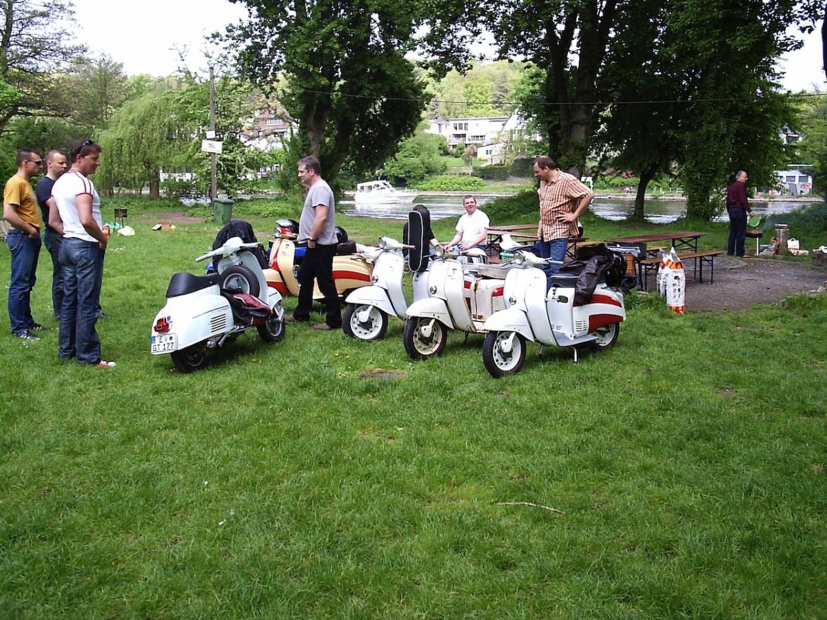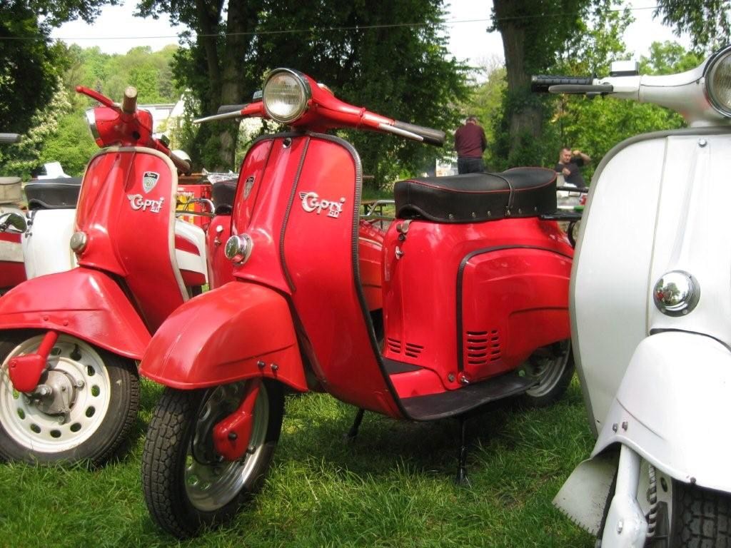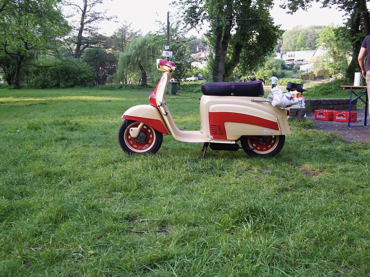 Am 1. Mai war es soweit - am Ruhrstand in Mülheim an der Ruhr traf sich eine kleine Gruppe von 10 Capri Fahrern und Besitzern mit immerhin 8 fahrbereiten Agrati Garelli Capri Rollern. Mit dabei: 1 Agrati Capri 50S (Rundheck), 1 Agrati Garelli Capri Brianza 50S und 6 Agrati Garelli Capri Brianza 50. Der Zustand der Roller war von 1A Restauriert bis original aus dem Keller mit ein "wenig" Rost ;-)