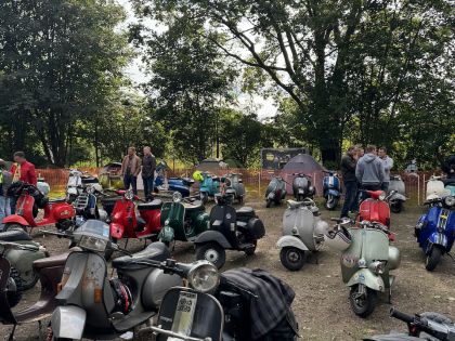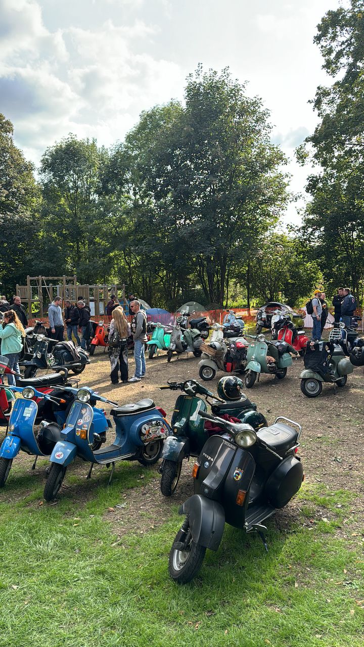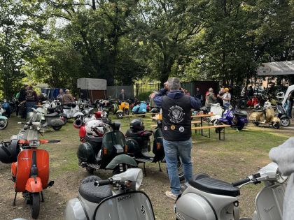 Die Schaltrollerfreunde Meiderich haben auch dieses Jahr wieder einen tollen Event mit Ausfahrt auf die Beine gestellt dem zahlreiche Blechschaltrollerfahrer aus dem In- und Ausland angefahren sind. Leider war ich in diesem Jahr etwas zu spät für die Ausfahrt, dafür konnte ich die kulinarischen Genüsse und das ein oder andere Gespräch mit gleichgesinnten bei perfektem Wetter genießen.