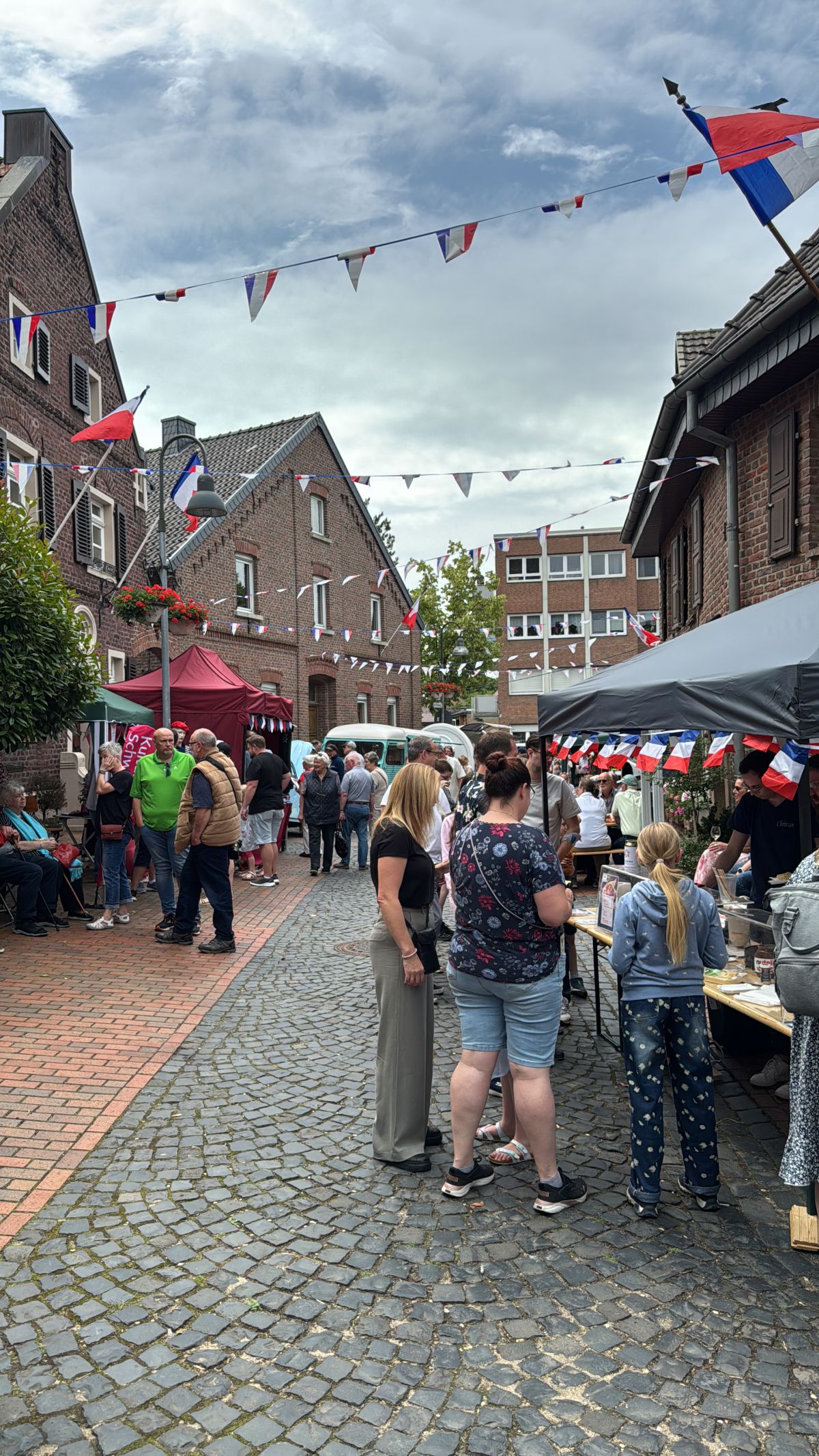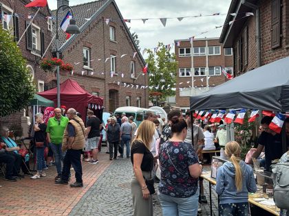 Daniel wies uns auf eine Veranstaltung in Amern hin, wo er beim 4. Französischer Markt mit von der Partie ist und wir doch einfach mal vorbeischauen sollte. Ich habe mich mit der Familie in Auto gesetzt und wir sind zusammen dorthin gefahren. Das Fest war bei besten Wetter gut besucht, es gab neben den kulinarischen Snacks wie Crêpes und Flammkuchen auch leckere Weine und eine charmante Quizrunde durch das Fest. Abgerundet wurde das Ganze mit Live-Musik (Französischer Chanson), einem kleinen Flohmarkt und einer Boule-Bahn.