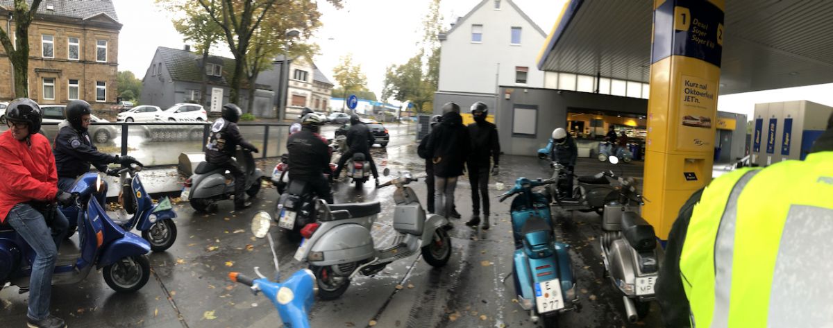 Wieder hat hatten die Gelsenkirchener zum gemeinsamen Abrollern eingeladen und wir waren gerne mit dabei. Leider war das Wetter nicht 100% rollertauglich, dafür sorgten die schöne Route durchs Ruhrgebiet und nette Leute mit klassischen Schaltblechrollern vorwiegend aus dem Hause Piaggio für mehr als nur einen Ausgleich. Bilder sind leider nicht viele entstanden, war hat etwas nervig immer aus den klammen Handschuhen herauszumüssen.