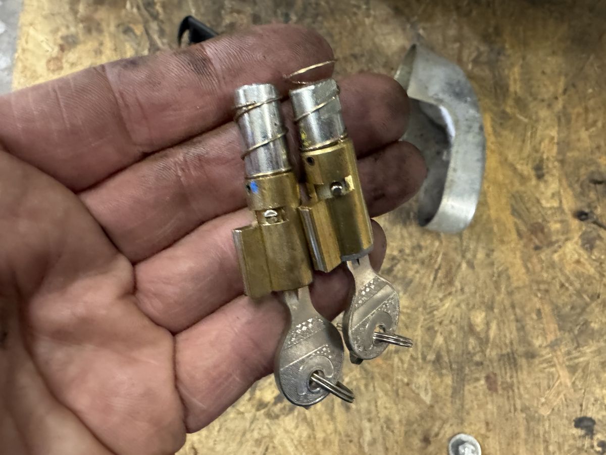 Zu Beginn habe ich das Lenkerschloss entfernt. Beim Vergleich mit einem Schloss aus einer Vespa Smallframe sieht man ziemlich viele Übereinstimmungen bei der Form, lediglich der Bolzen ist kürzer. -