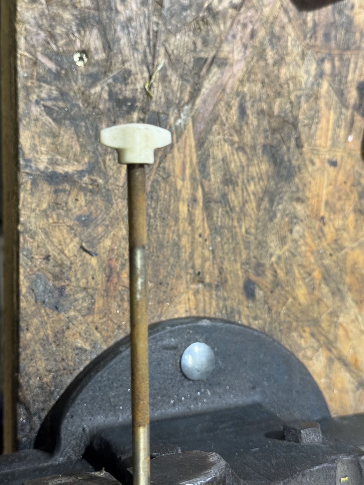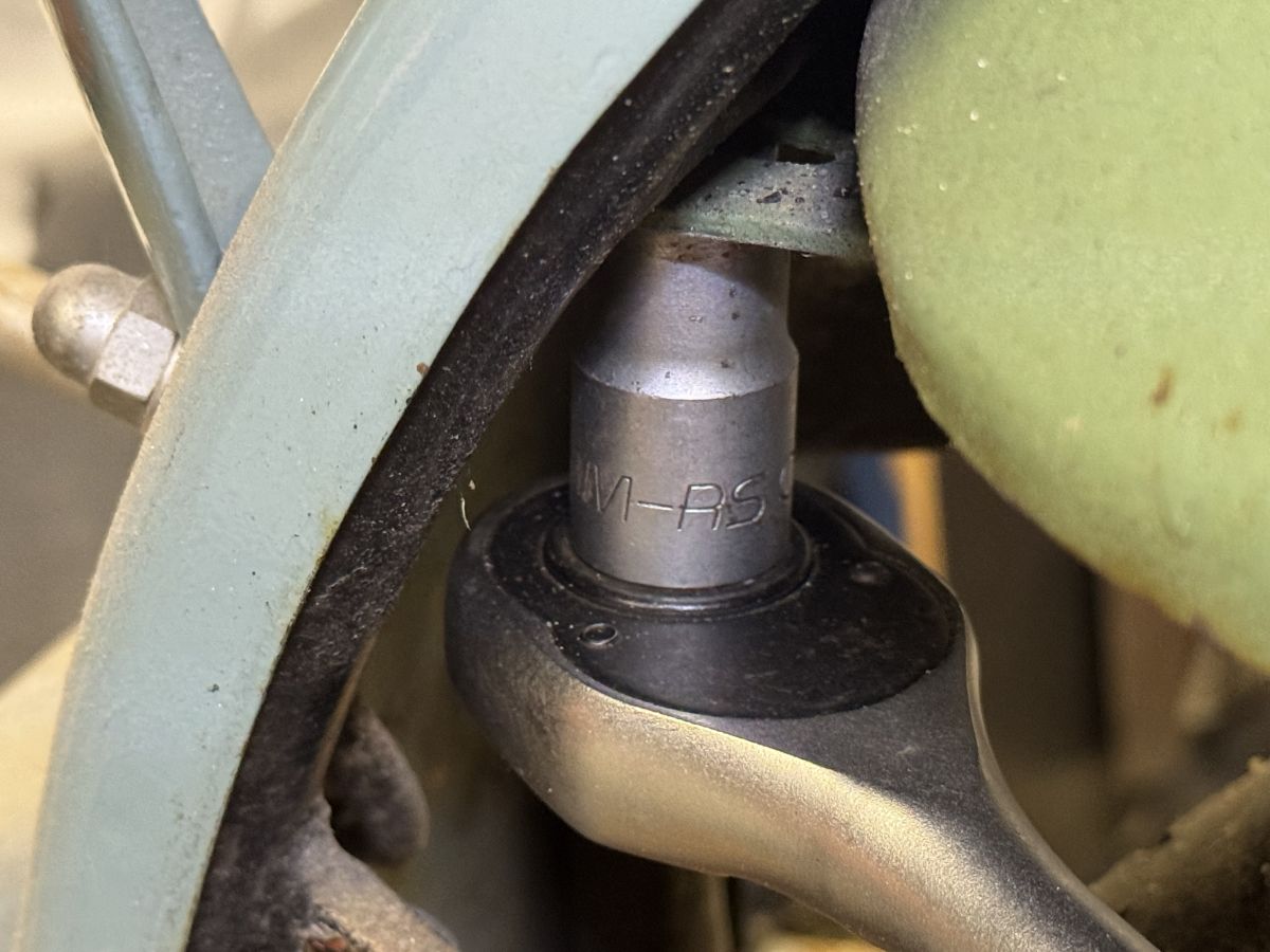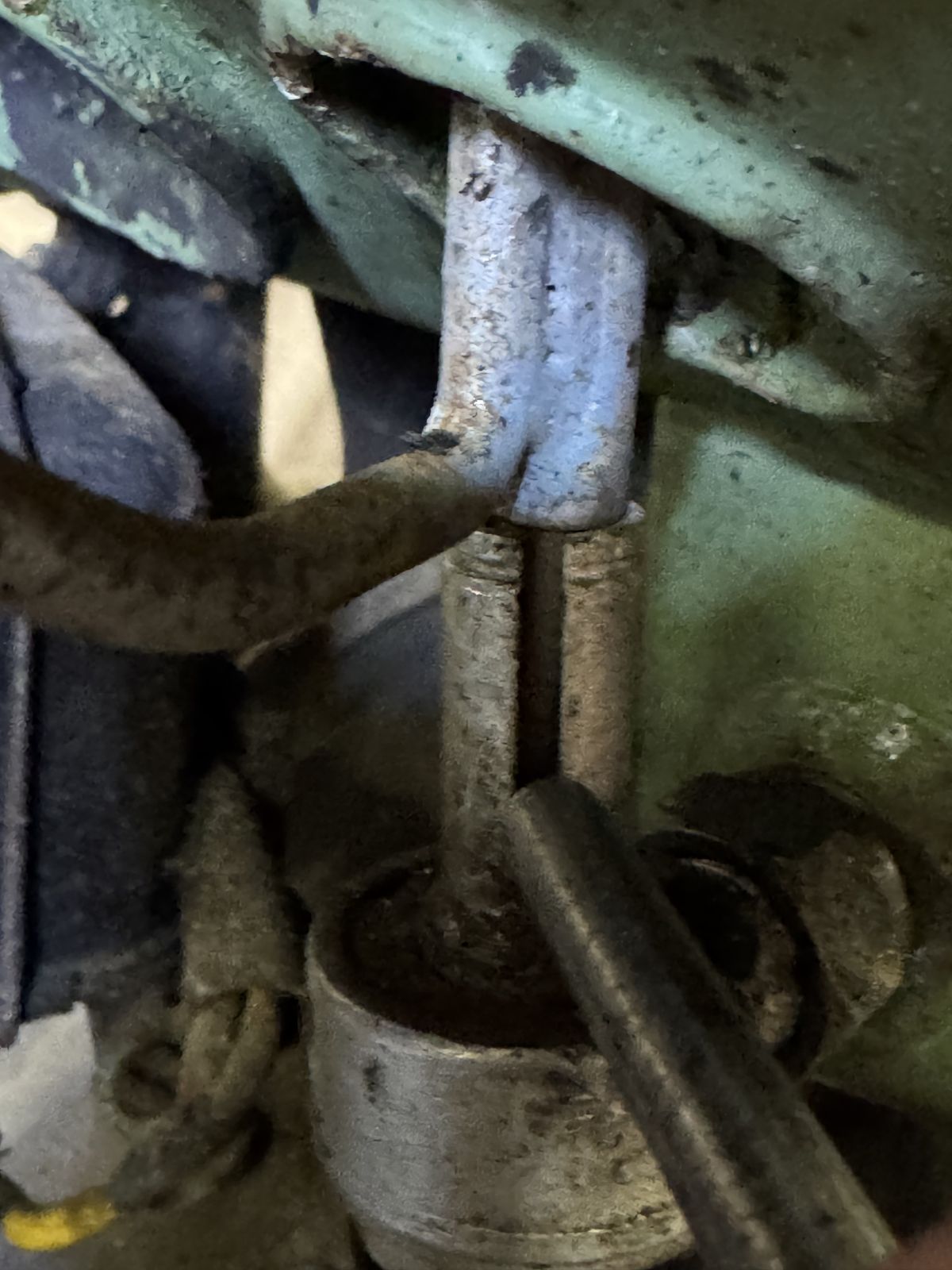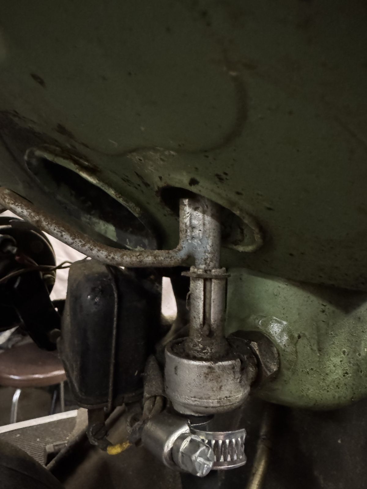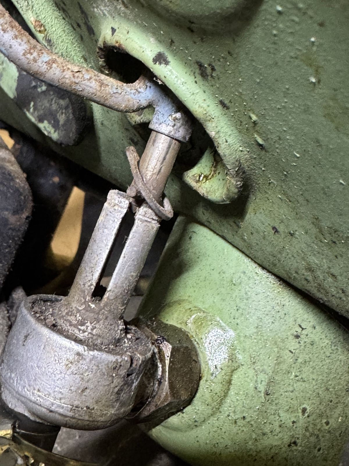 Mit einem Splinttreiber habe ich dann kleinen Splint durch das Benzinhahngestänge mit vorsichtigen Hammerschlägen herausgetrieben. -