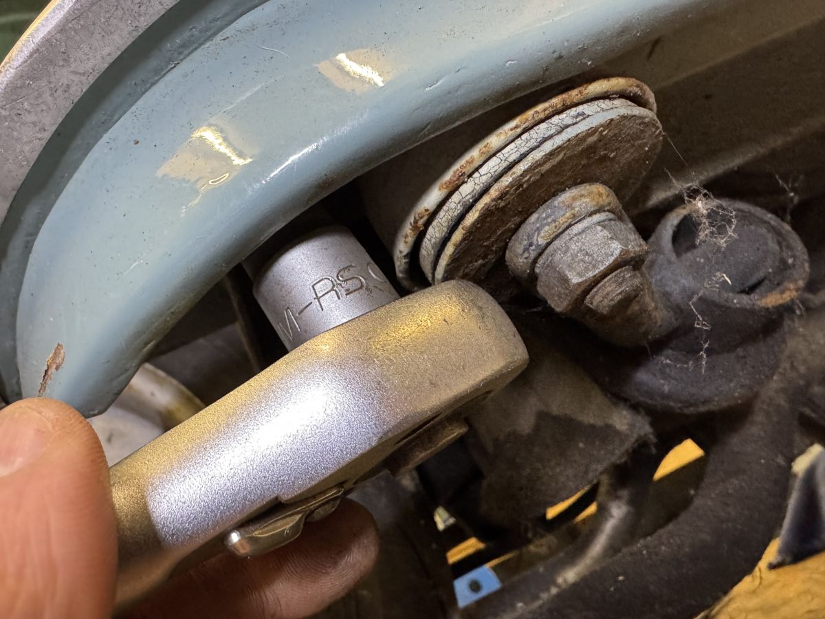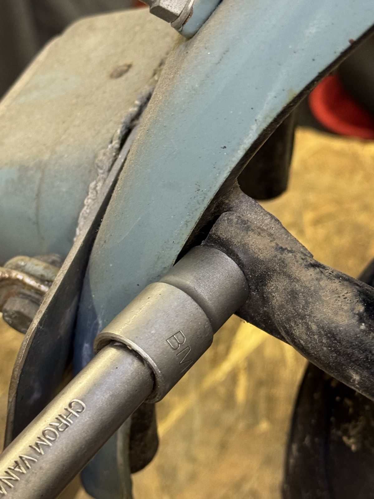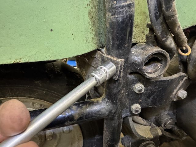 Nun die zwei Muttern (M 17) am hinteren Bereich des Tanks lösen. -