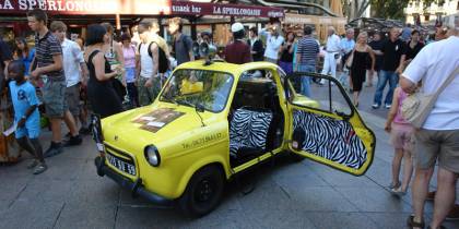Das ein Vespa 400 auch heute noch ein aufsehenerregendes Gefährt ist, zeigen die nachfolgenden Fotos, die Regina und Michael aus Avignon mitgebracht haben. Auf dem dort im Sommer stattgefundenen Theaterfestival zogen verschiedene Künstlergruppen tagsüber durch die Stadt, um für ihre am Abend stattfindenden Veranstaltungen zu werben.