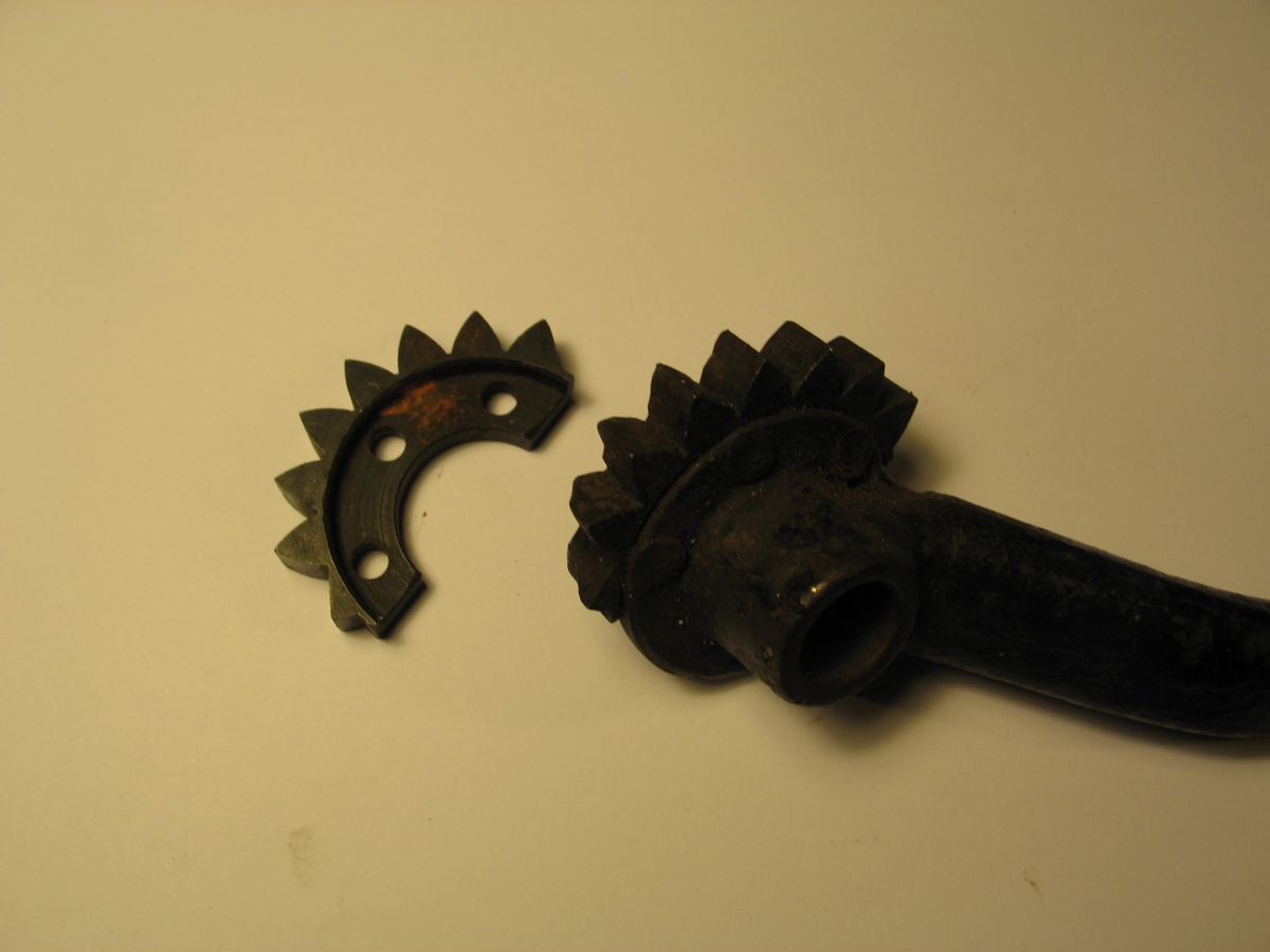 Die Ritzel nutzen sich mit der Zeit ab und verlieren ihre Zähne, da das Material etwas weicher als das des Nehmerritzels auf der Antriebswelle ist. Es fängt mit dem ersten Zahn an, ist dieser heruntergeschliffen, geht es mit dem nächsten weiter bis schließlich ein Antreten des Motors kaum noch möglich ist.