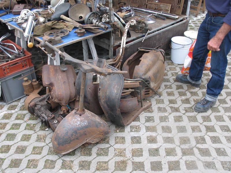 Vor ca. einer Woche wurde ich zu einem finde ich sehr bemerkenswerten Beweis für die Qualität einer Vespa V50 gerufen. Doch der Reihe nach: im Verlauf eines sommerlichen Gesprächs im Freundeskreis kam das Thema auch auf alte Roller. Auf die Frage, ob ich einmal zur technischen Begutachtung einer Vespa V50 meine Meinung abgeben könnte, habe ich spontan erstmal ja gesagt. "Der steht bei uns schon 10 Jahre im Keller und wir würden gerne wissen, was gemacht werden muß um ihn wieder auf die Straße zu bringen"