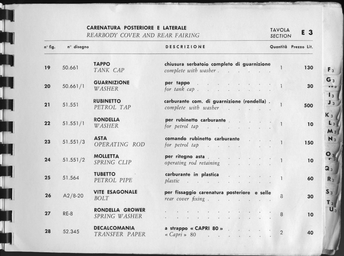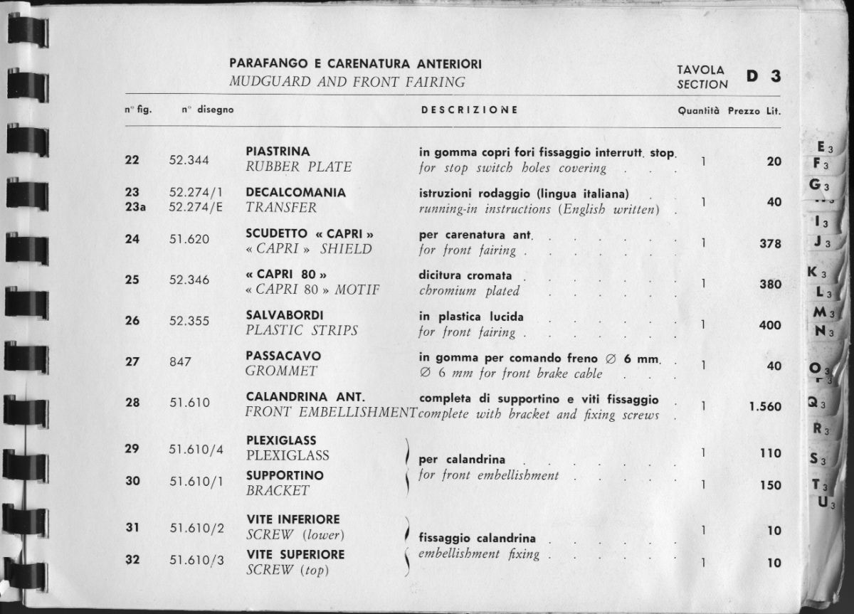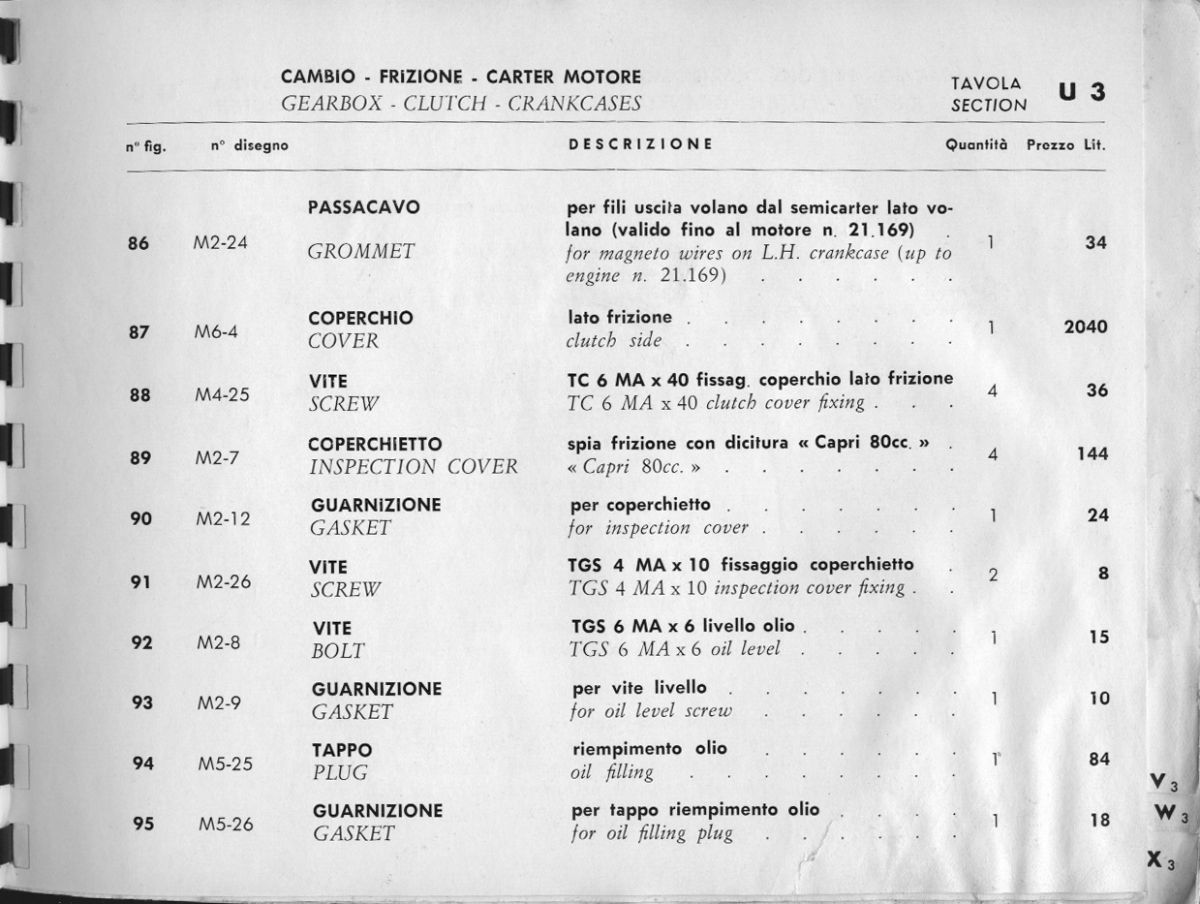 Ersatzteilliste Capri 80 mit Minarelli Motor