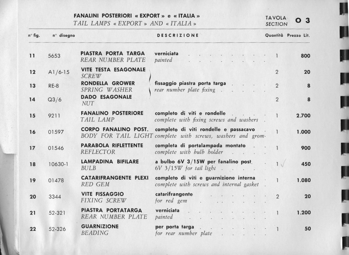 O - Tail Lamps „Export“ and „Italia“