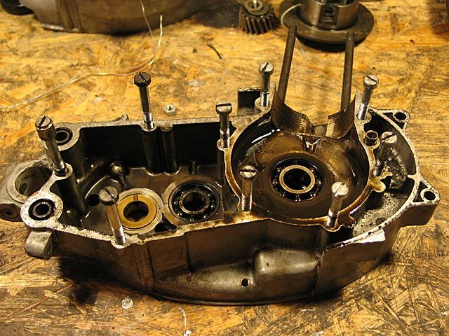 29 ) Man fülle das Öl im Getriebegehäuse nach, es bedarf dazu etwa 400 ml SEA 30 Getriebeöl (Ist das selbe wie in der Vespa). Die Einbringung erfolgt durch die oberseitige Bohrung, welche sich an der Vorderseite des linken Deckels befindet.