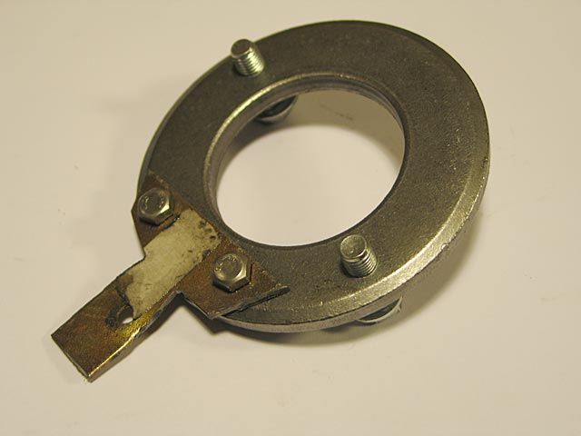b ) Man montiere die Ankerplatte, wobei darauf zu achten ist, das die Markierungen, die bei der Demontage angebracht wurde, übereinstimmen. Dann schraubt man die drei Halteschrauben ein, ohne sie jedoch fest anzuziehen.
