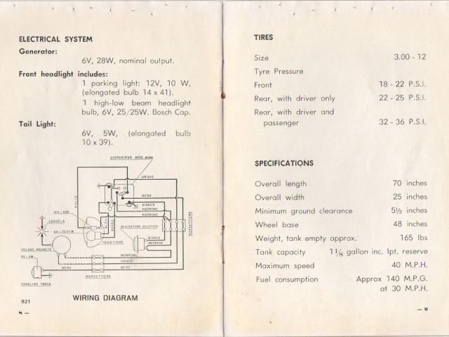 Dieser Schaltplan ist aus der Bedienungsanleitung des Agrati Capri 50 mit Sachs 50/3 Motor entnommen und für das Model mit rundem Heck. Der Sachs Motor hat eine innenliegende Zündspule weshalb im Schaltplan die Zündspule nicht zu sehen ist da diese auf der Ankerplatte zusammen mit der Lichtspule im Motor verbaut ist.