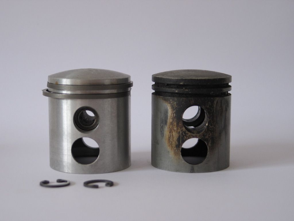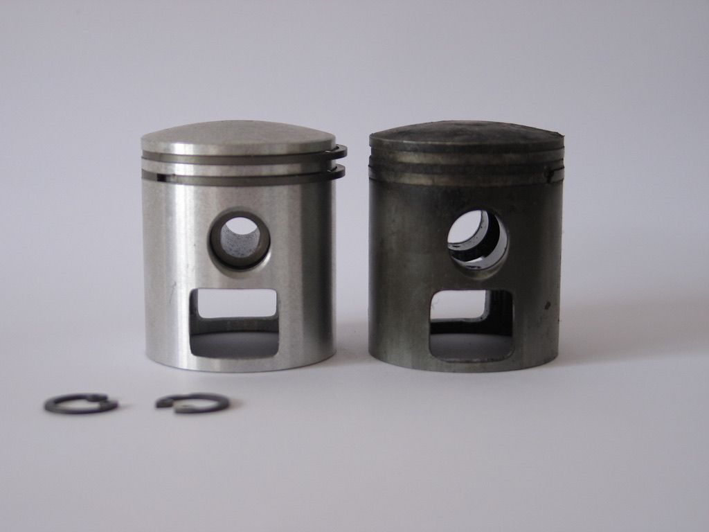Der neue Kolben hat erfreulicherweise etwas dünnere Kolbenringe. Erhältlich in den Maßen 40,0 mm bis 42,0 mm.