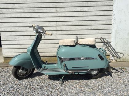 Der Roller wurde wohl mal aus Restteilen zusammengesetzt, er trug beim Kauf ein Schwanenhalsrücklicht, eine PK Kasskade und den Lenkkopf einer V50 N. Das Ganze im poppigen Mint ergab einen Eisdielenroller im Geschmack der 1980er Jahre.