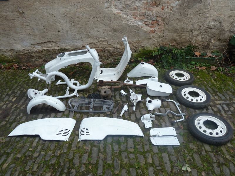 Wie auch immer – die meisten Teile, die ersetzt werden mussten, sind inzwischen beschafft, und der Roller wartet auf seine Vollendung.